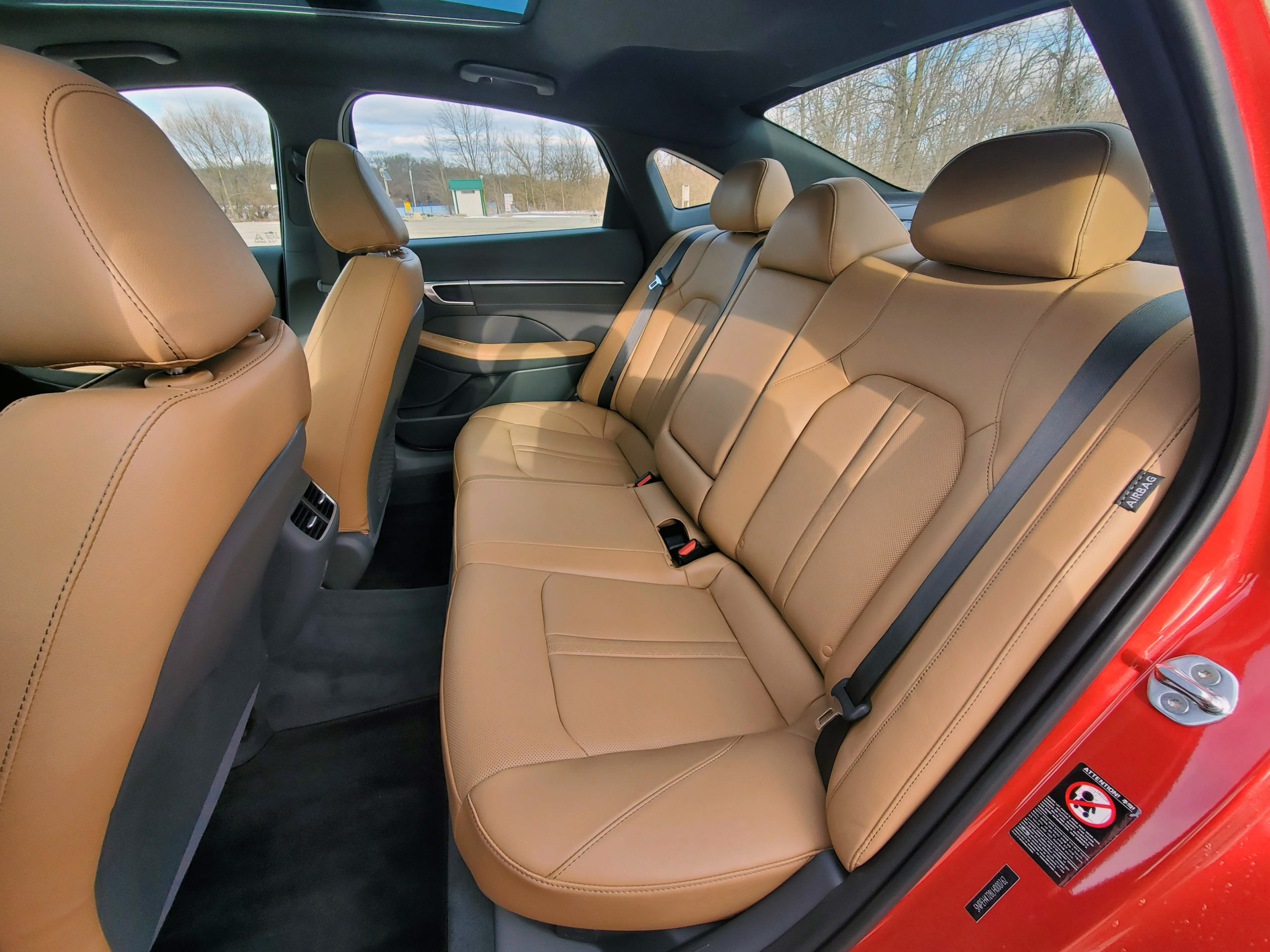 The interior is more universally appealing. Hyundai struck a pleasing blend of form and function. There are a few aspects of particular note: The steering wheel features four strategically placed spokes, maximizing arm comfort in virtually all positions. The infotainment display is worked artfully into the dash, rather than being plopped on top haphazardly, as it is with many new vehicles. The HVAC controls are some of the best around. Each function has a physical button or switch, and they’re all straightforward. This concept, which was so simple just a decade ago, has been muddled by manufacturers masking these functions behind lethargic touchscreens. Thank you, Hyundai, for not following this trend.