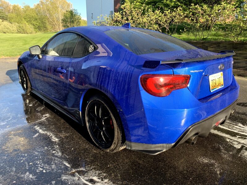 The BRZ scores high marks for having Apple Carplay, good safety ratings, and being both practical and comfortable enough to drive everyday. There are a few lows here though too. The motor needed the tune to really wake it up appropriately. The shift action, despite sharing a near identical transmission to the S2000, isn’t as good as the S2000. Plus that whole lack of sound deadening thing we mentioned. Unfortunately, the BRZ can look mundane in some colors, particularly silver. This BRZ had CQuartz ceramic coating on it, and the results in the blue were stunning.