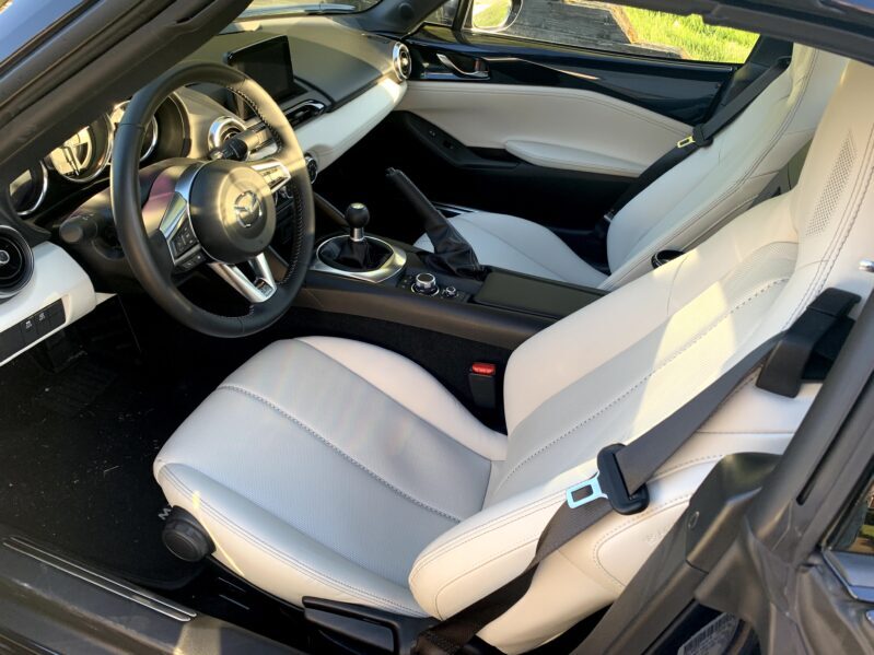 Technology is good in the Miata RF with all the modern things you’d expect on a newer car. This includes side impact airbags and Bose surround sound. By comparison, the S2000 and BRZ have lesser sound systems, and the S2000 doesn’t have the headrest speakers the Mazda does. The onboard screen technology worked well, but Mazda still insists on planting an ugly tablet mid-dash. The more modern SkyActiv engine also means excellent gas mileage.